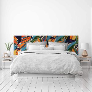 PersonalizarNuestros cabeceros están impresos en vinilo laminado y puestos sobre placa de PVC de 3 mm, este nuevo producto pude ser adaptado a varios tamaños de camas y con este diseño ornamental con gama de azules y naranjas puedes lograr la decoración que quieres para tu habitación.