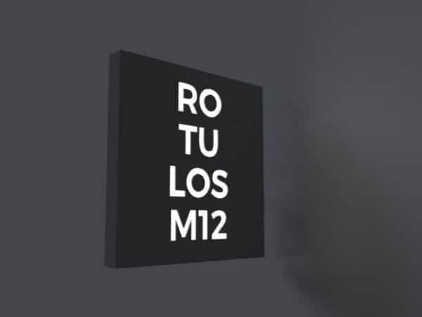 Banderola fabricada en composite de 3mm con tu texto calado. La luz solo sale por el texto o logo, el resto es totalmente opaco. Estructura interior de aluminio e iluminación por módulos led.