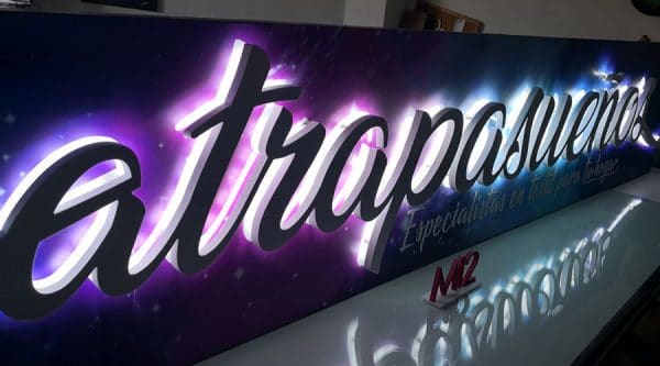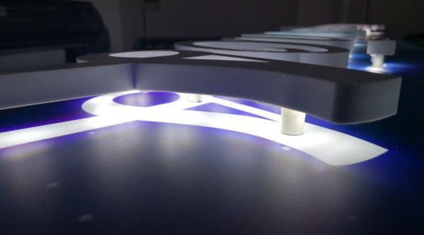 Letras corpóreas retroiluminadas en PVC, se realizan en grosores de PVC de 19 y 30 mm, con opciones de luz LED de lata luminosidad y en colores blanco frío y cálido, rojo, amarillo, fucsia, verde, azul, celeste, morado, naranja y RGB, que hacen que la luz se proyecte de manera uniforme y difusa. El cableado es invisible desde el frontal ya que el PVC es cajeado desde el interior de la letra, esto hace que quede un acabado más limpio y profesional.