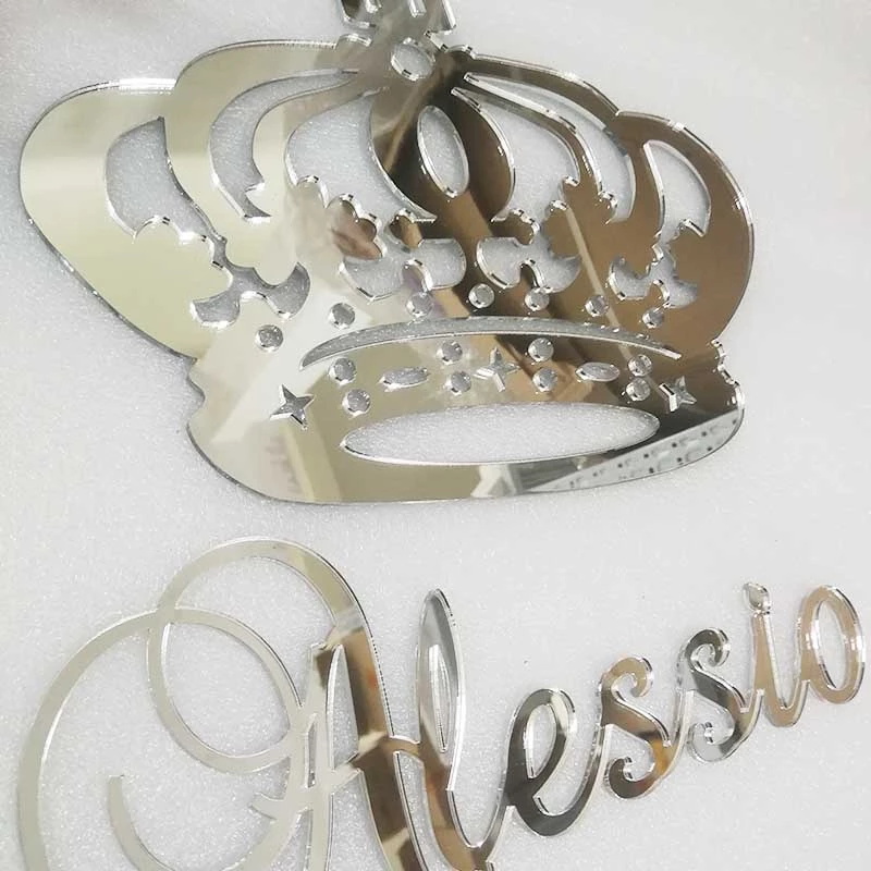 Las letras corpóreas en metacrilato espejo son fabricadas en lámina de 3 mm, y su efecto reflectivo es perfecto, igual a la de un espejo de cristal. Podemos realizar cortes de todo tipo nombres, logotipos, figuras etc. Para su instalación pueden ser sujetadas con cinta doble faz, para lo que te suministramos el plano con las guías.